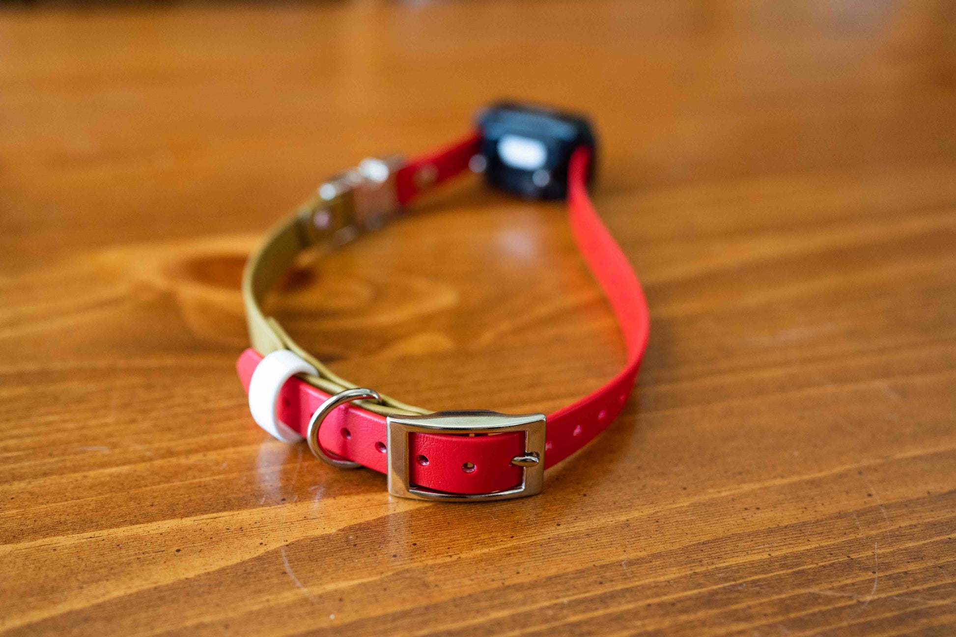 This collar can be single or two-toned. If your dog has a very small neck size, it might be best to avoid adding the quick release buckle and bungee because the collar will be too large. We can do custom color straps with only the adjustable buckle. Don't add the bungee for neck sizes smaller than 16". If you would like the bungee instead of the quick release buckle, please check out the other listing as this is suitable for smaller neck sizes.