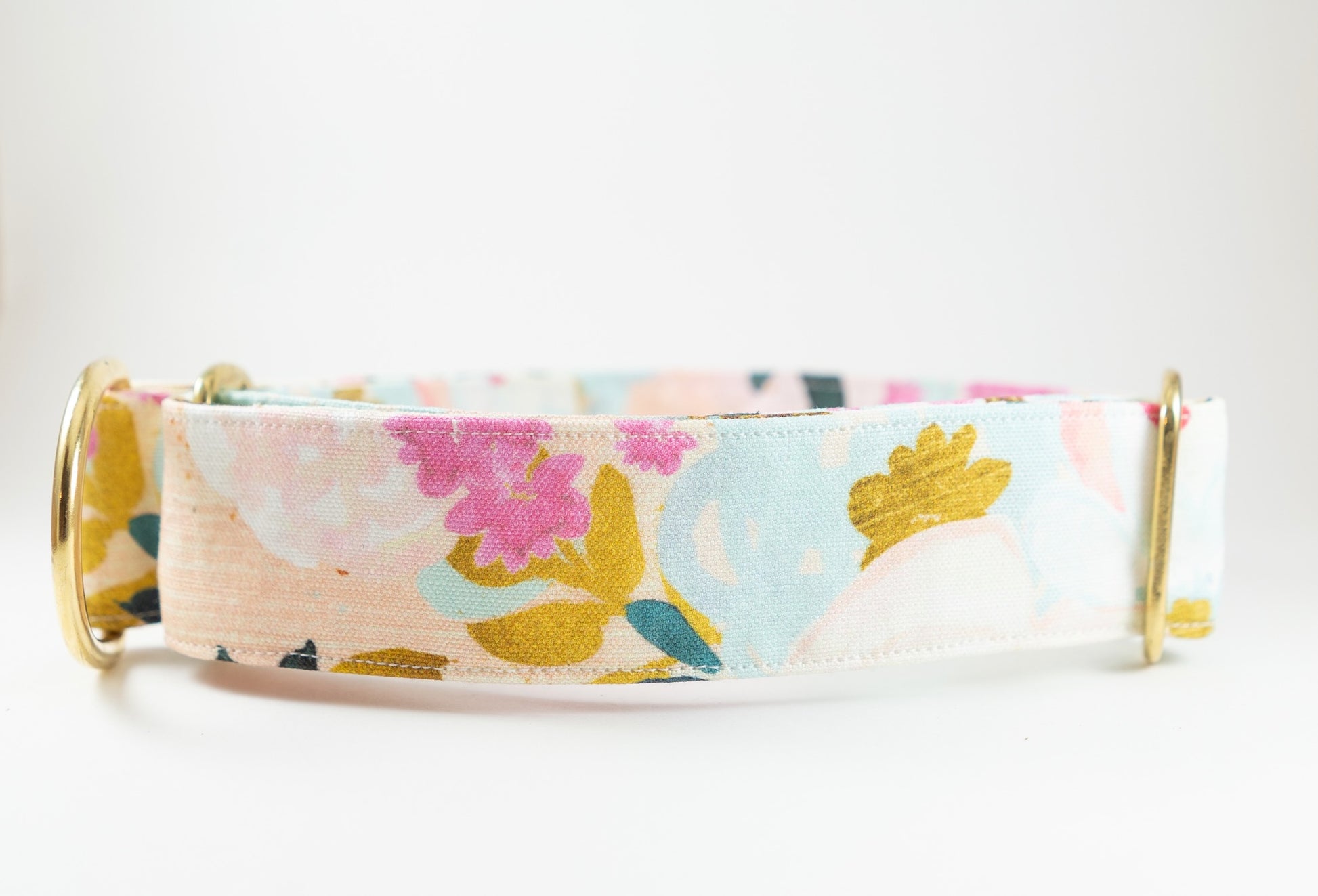 The floral eco canvas print features flowers and abstract splotches of color on our durable eco canvas fabric. Eco canvas fabric is made with recycled plastic bottles, so if you are looking for an eco friendly dog collar, look no further! All collars are handmade to order. Each collar will be unique. Some prints vary more than others, so please keep this in mind!